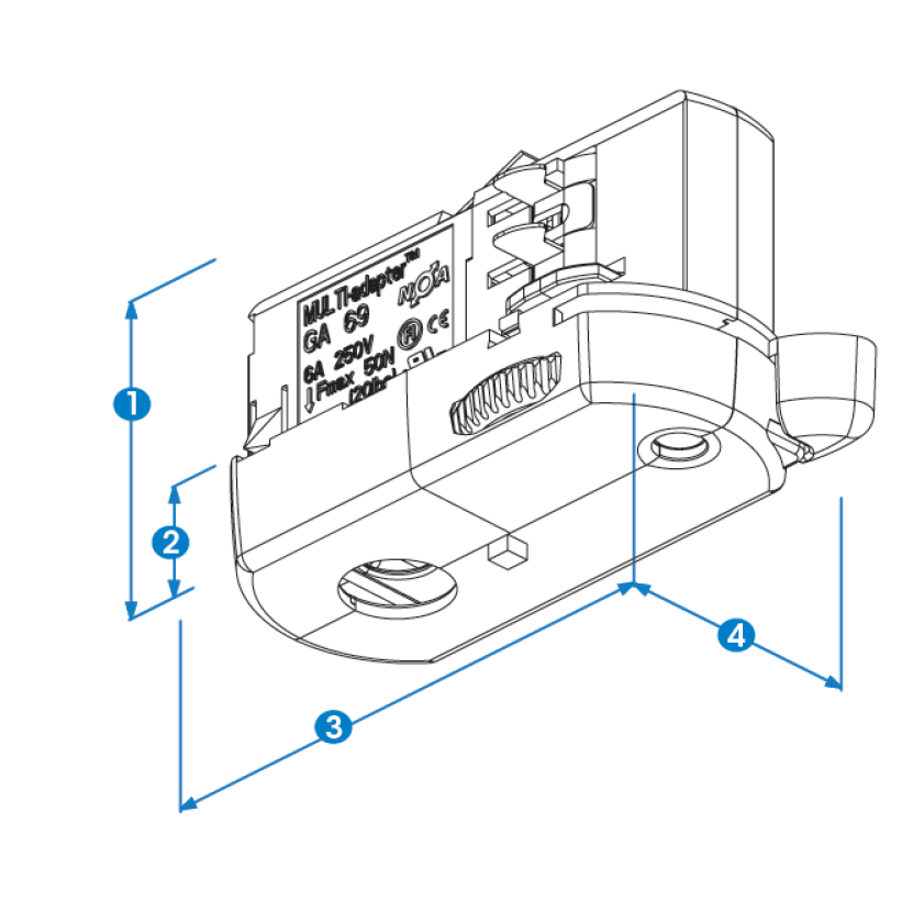 White lighting track adapter. The unipro® A79 lighting adapter is used for spotlight installations. The unipro® A79 is designed to be compatible with most 3-phase lighting tracks.