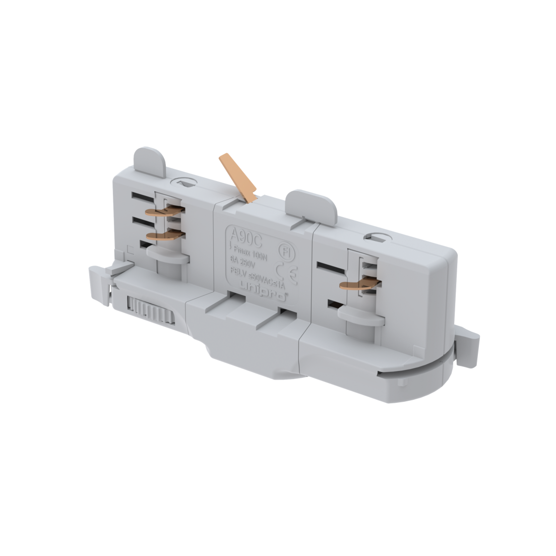 White A90C lighting adapter for DALI-spotlight lighting track installations. Quick and easy to install.