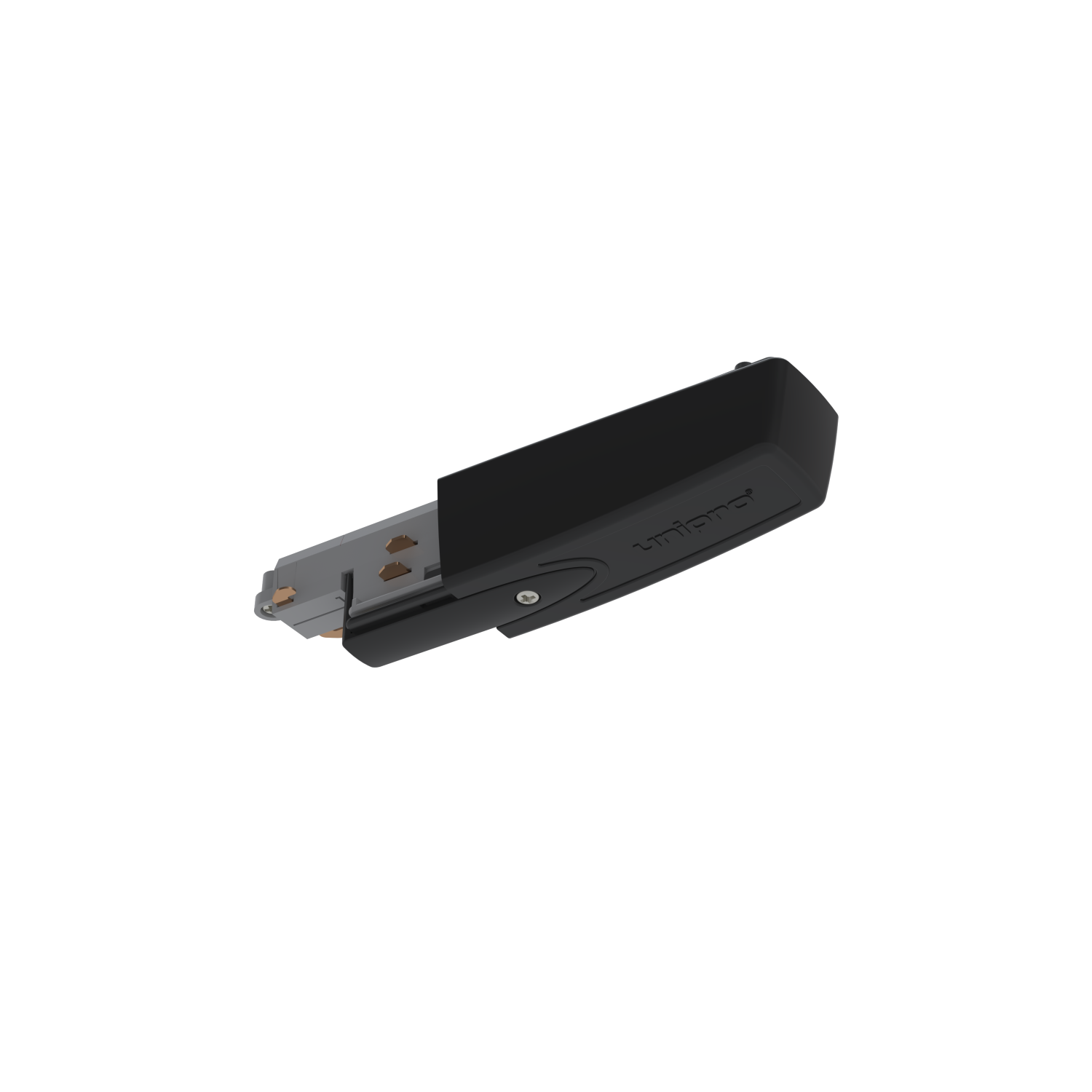 Black feeding unit for Control-DALI lighting tracks, end feed. Grounding A.