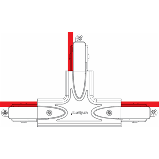 White Control-DALI T piece for lighting track extensions and connections. The T piece is equipped with a power supply option, grounding A.