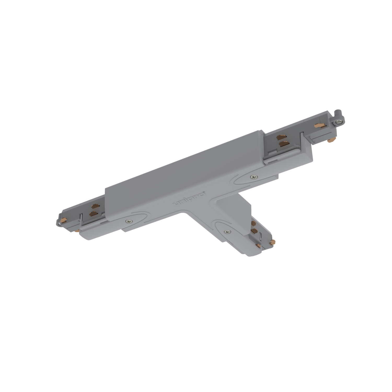 White Control-DALI T piece for lighting track extensions and connections. The T piece is equipped with a power supply option, grounding D.