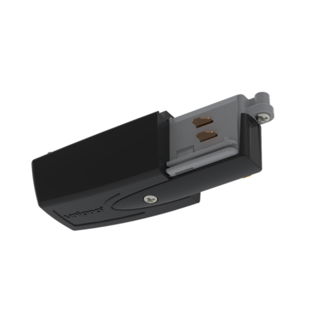 Black feeding unit for lighting tracks, end feed. Grounding A.