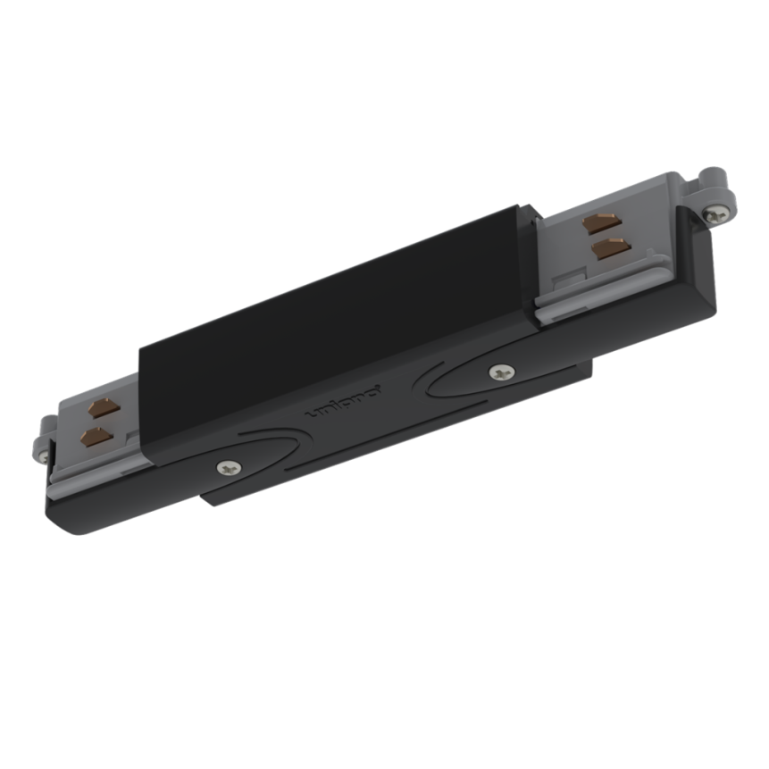Black central feeding unit for connecting lighting tracks and enabling power supply to the following track. Quick and easy to install.