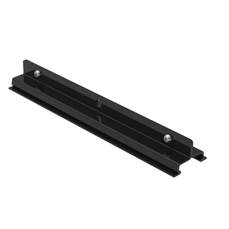 Black suspension clamp for the extension to the lighting track. The steel suspension clamp for the extension is an excellent choice for sections where the lighting tracks have been connected using the unipro® JU3 extension.