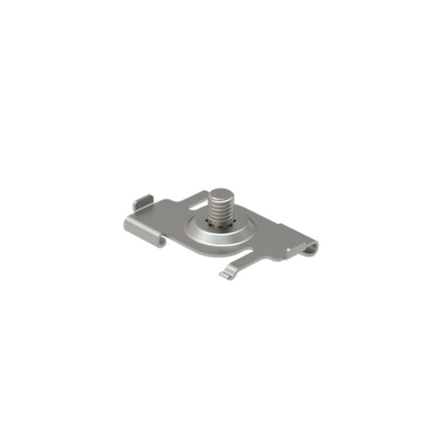 Quick clamp installed into the ceiling using a cable suspension set and threaded rod.