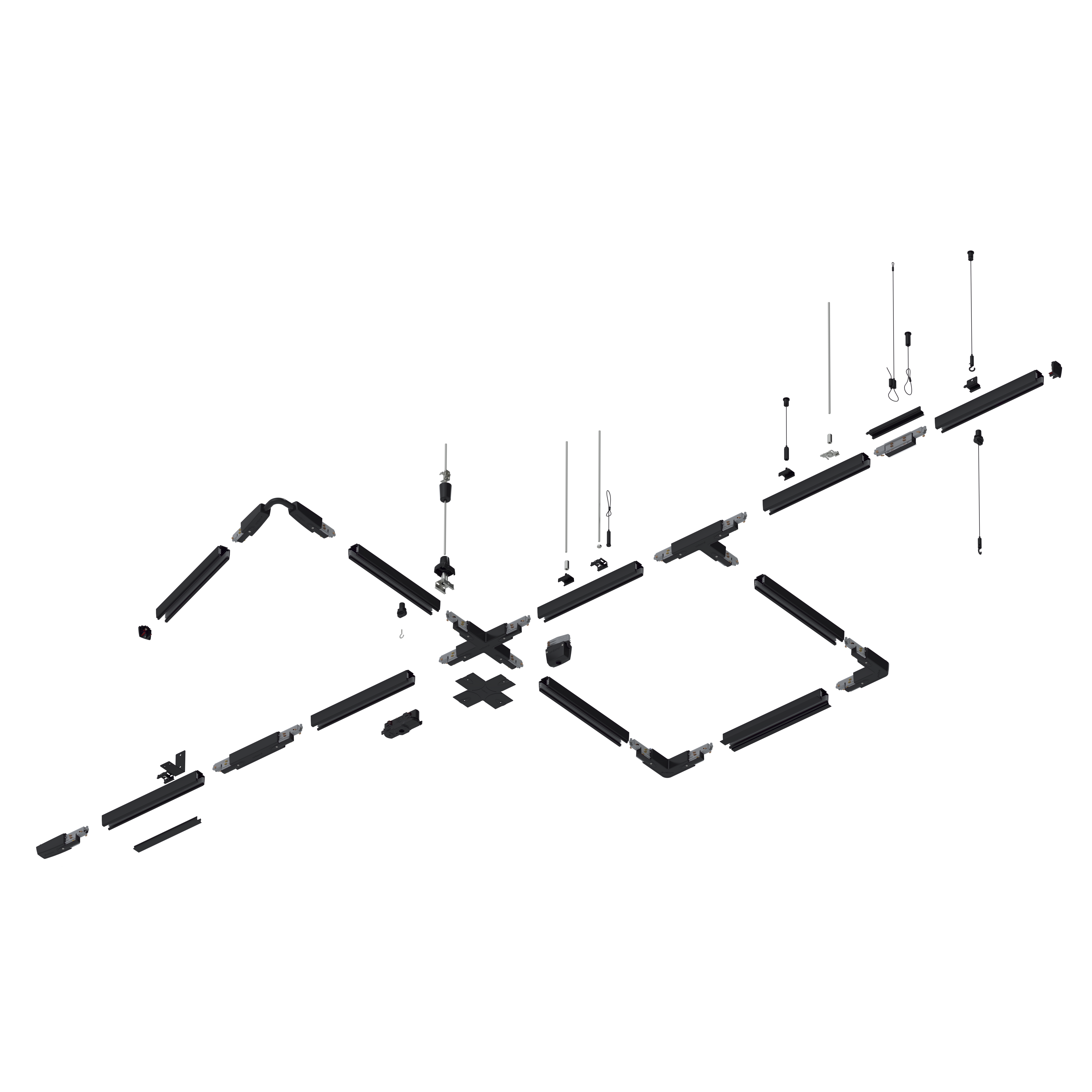 Halogen-free recess-mounted lighting track for controlling DALI lighting. The Finnish lighting track is made from extruded aluminium. The length of the black lighting track is 4 metres.